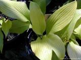 Bright gold leaves which change to medium green by mid summer. Heavily veined, rippled edges, heavy substance. Pale lavender flowers on 40" scapes.